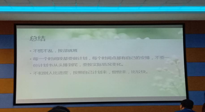 在此次活动中学长学姐们也做了充足的准备,有精心制作的ppt和流利顺畅的解说。本次活动不单单涉及到考研,还讲了有关于学硕和专硕的区别、如何对待自己的优点和不足之处、